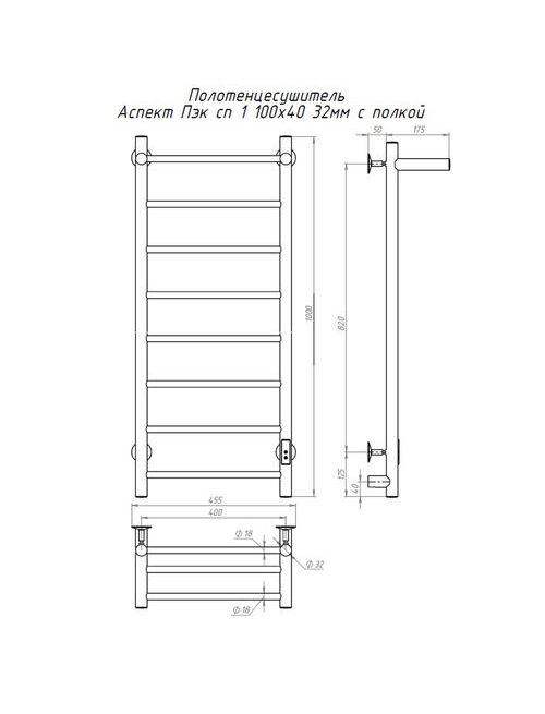 Полотенцесушитель Аспект Пэк сп 1 П 100х40 32 мм