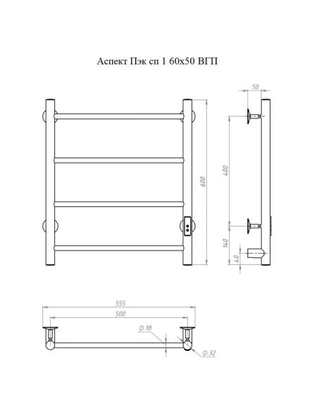 Полотенцесушитель Аспект Пэк сп 1 П 60х50 белый ВГП