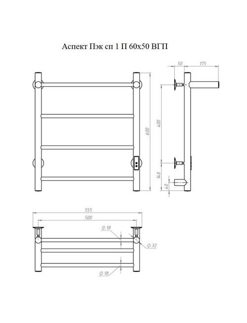 Полотенцесушитель Аспект Пэк сп 1 П 60х50 черный ВГП
