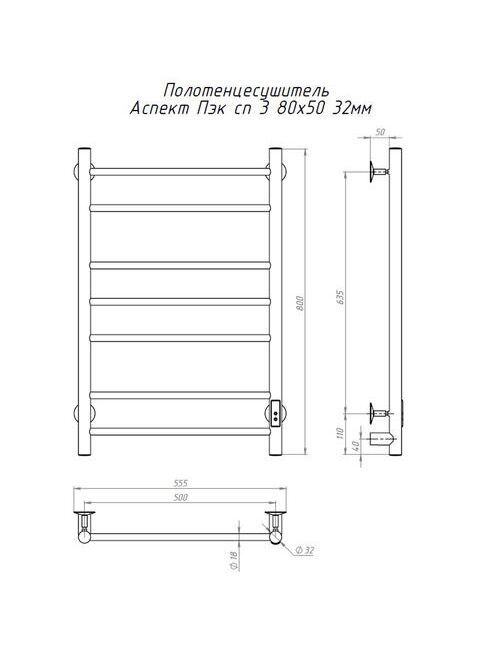 Полотенцесушитель Аспект Пэк сп 3 80х50 32 мм