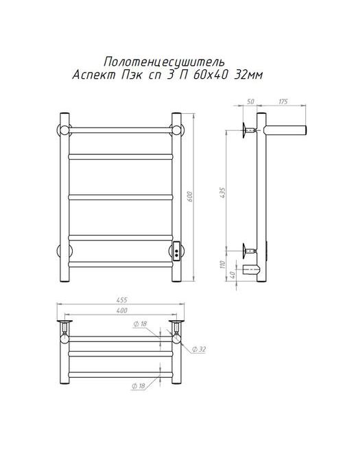 Полотенцесушитель Аспект Пэк сп 3 П 60х40 32 мм