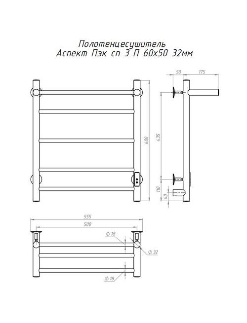 Полотенцесушитель Аспект Пэк сп 3 П 60х50 32 мм