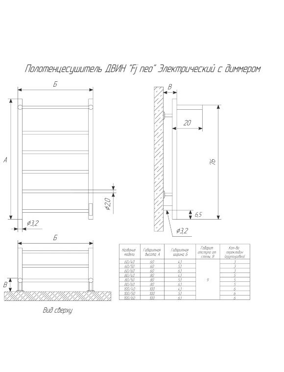 Полотенцесушитель ДВИН Fj neo 80/40 Электрический К диммер Полированный