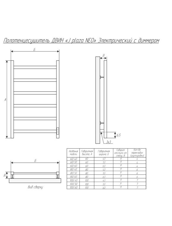 Полотенцесушитель ДВИН J plaza neo 80/40 Электрический К диммер квадрат Полированный