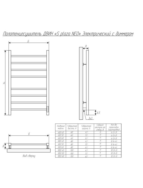 Полотенцесушитель ДВИН S plaza neo 60/50 Электрический К диммер квадрат Полированный