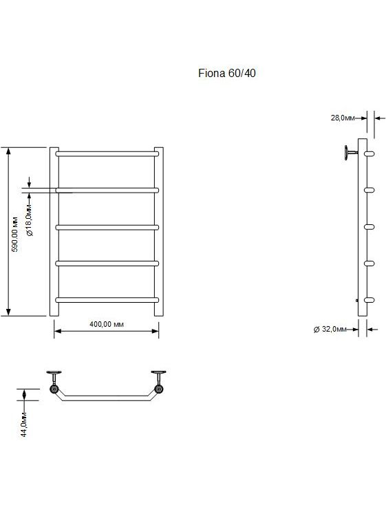 Полотенцесушитель электрический Aquanet Fiona 60х40 Тэн справа