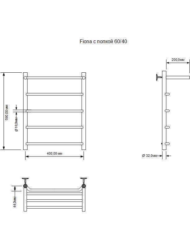 Полотенцесушитель электрический Aquanet Fiona 60х40 Тэн справа, с полкой