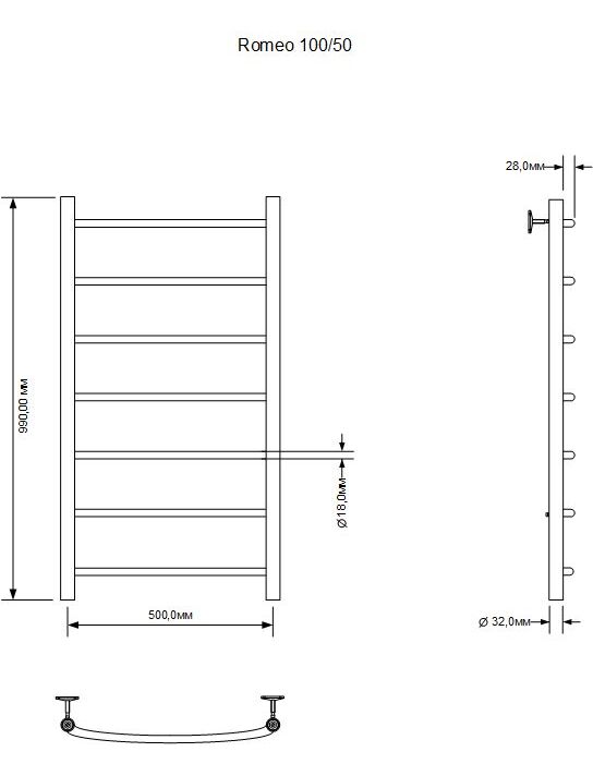 Полотенцесушитель электрический Aquanet Romeo 100х50 Тэн справа