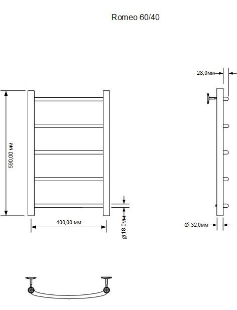 Полотенцесушитель электрический Aquanet Romeo 60х40 Тэн справа