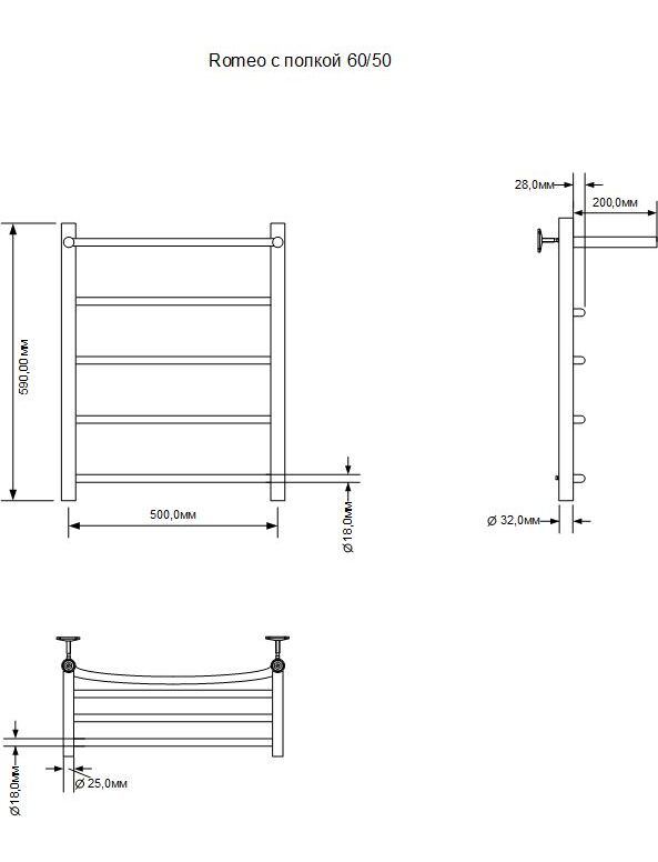 Полотенцесушитель электрический Aquanet Romeo 60х50 Тэн справа, с полкой