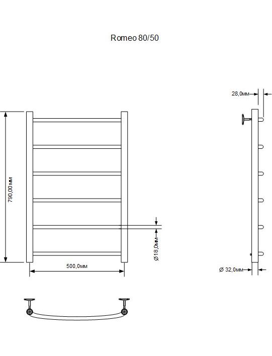 Полотенцесушитель электрический Aquanet Romeo 80х50 Тэн справа