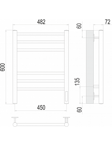 Полотенцесушитель электрический Аврора П6 450х600 электро КС 9005 матовый