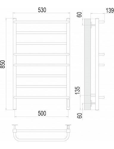 Полотенцесушитель электрический Евромикс квадро П8 500х850 электро