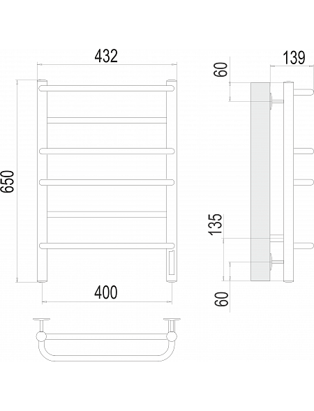 Полотенцесушитель электрический Евромикс П6 400х650 электро