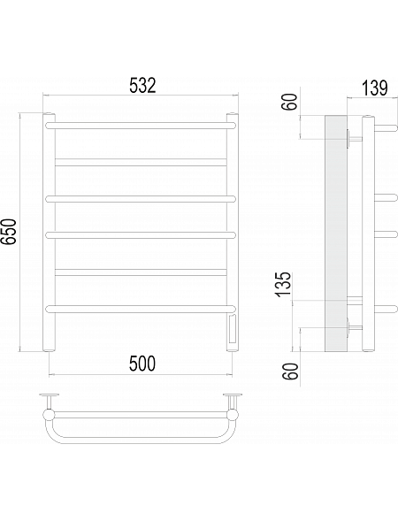 Полотенцесушитель электрический Евромикс П6 500х650 электро