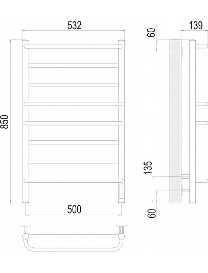 Полотенцесушитель электрический Евромикс П8 500х850 электро