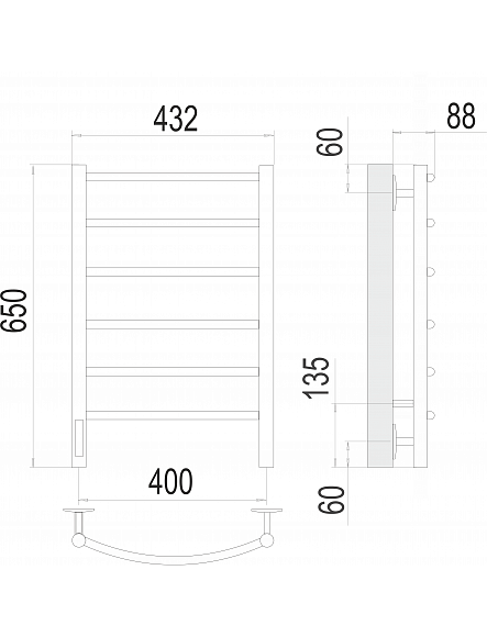 Полотенцесушитель электрический Классик П6 400х650 левый электро