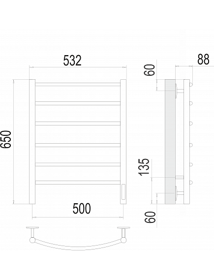 Полотенцесушитель электрический Классик П6 500х650 электро