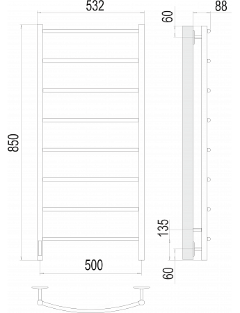 Полотенцесушитель электрический Классик П8 500х850 левый электро