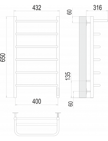 Полотенцесушитель электрический Полка П6 400х650 электро