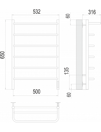 Полотенцесушитель электрический Полка П6 500х650 электро