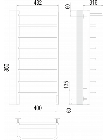 Полотенцесушитель электрический Полка П8 400х850 электро