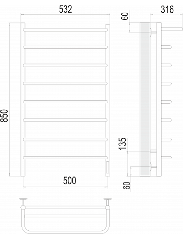 Полотенцесушитель электрический Полка П8 500х850 электро