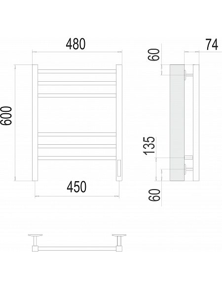 Полотенцесушитель электрический Сицилия П6 450х600 электро КС 9003 матовый
