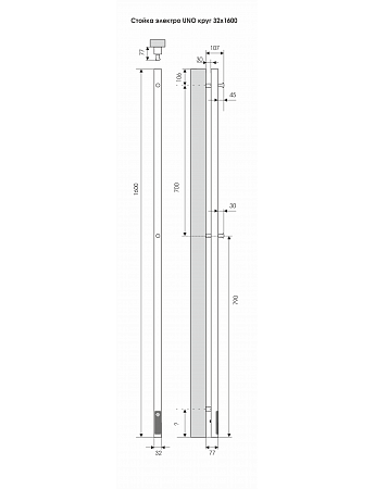 Полотенцесушитель электрический Стойка электро UNO круг1600