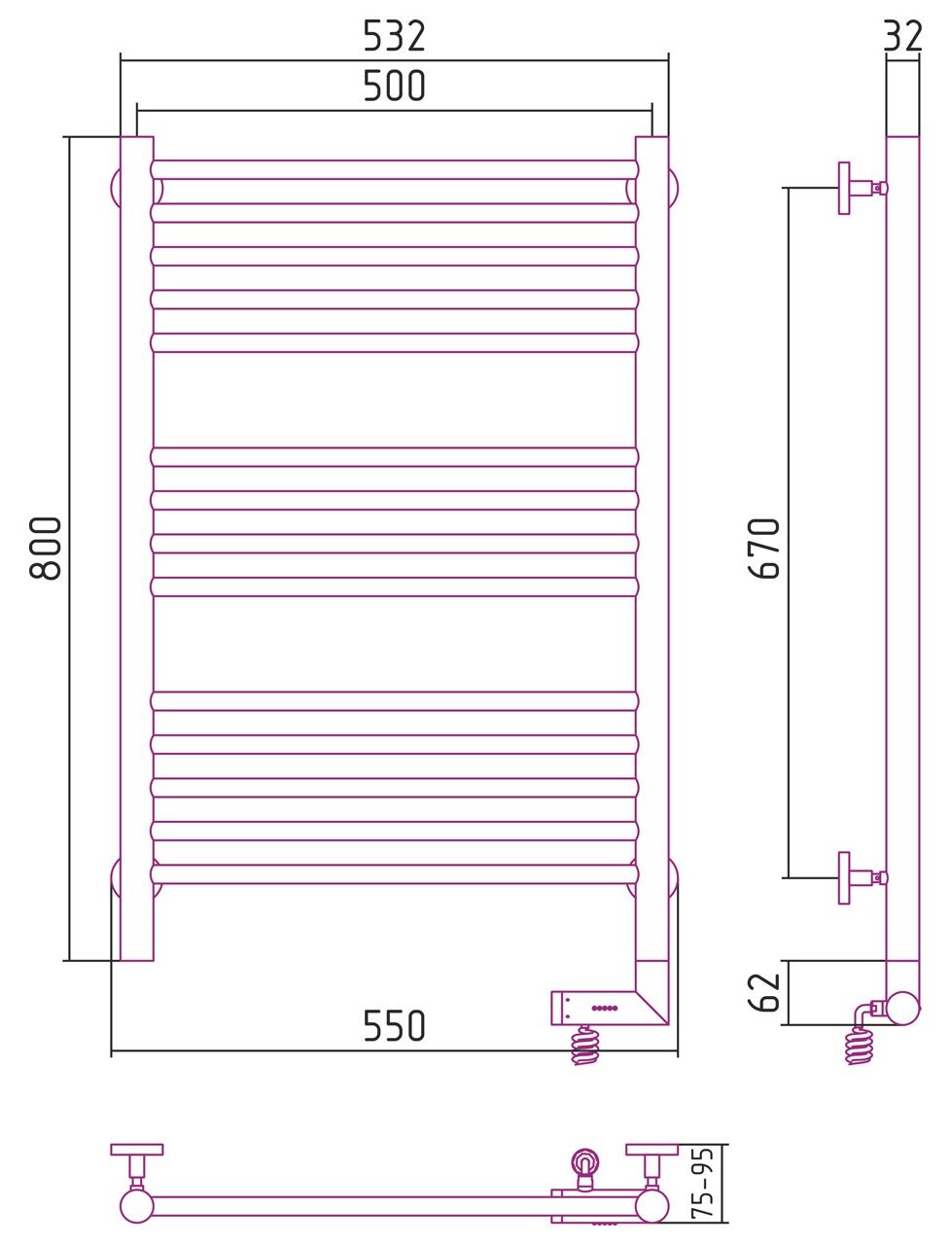 Полотенцесушитель электрический Сунержа Богема 2.0 прямая 800х500 МЭМ правый