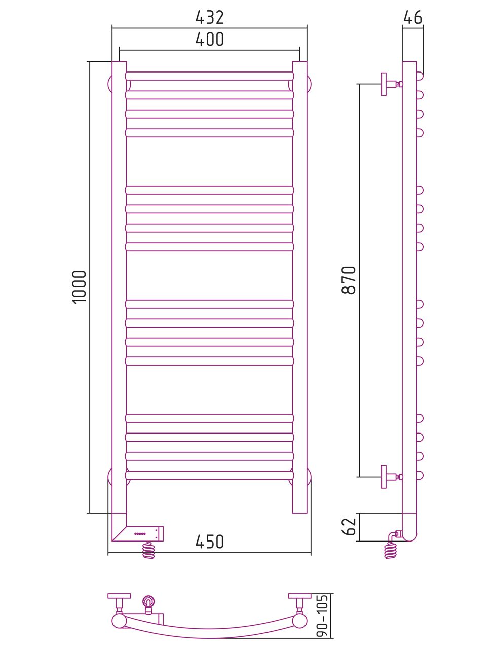 Полотенцесушитель электрический Сунержа Богема 2.0 выгнутая 1000х400 МЭМ левый