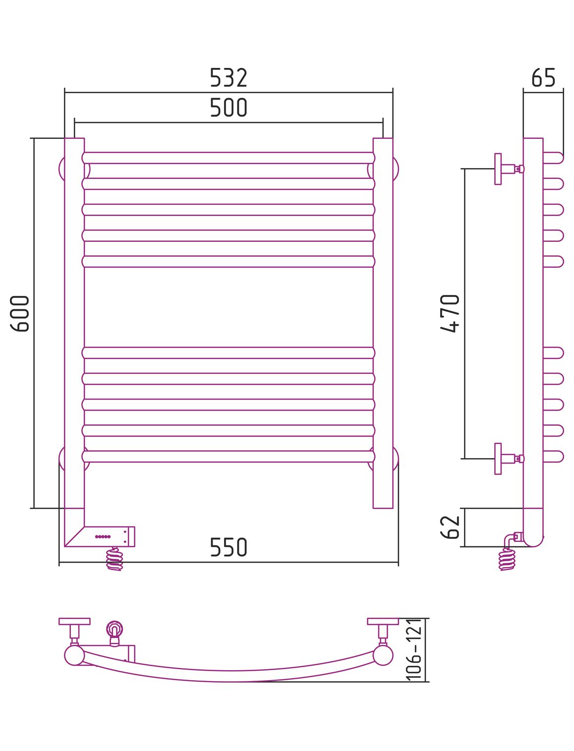 Полотенцесушитель электрический Сунержа Богема 2.0 выгнутая 600х500 МЭМ левый