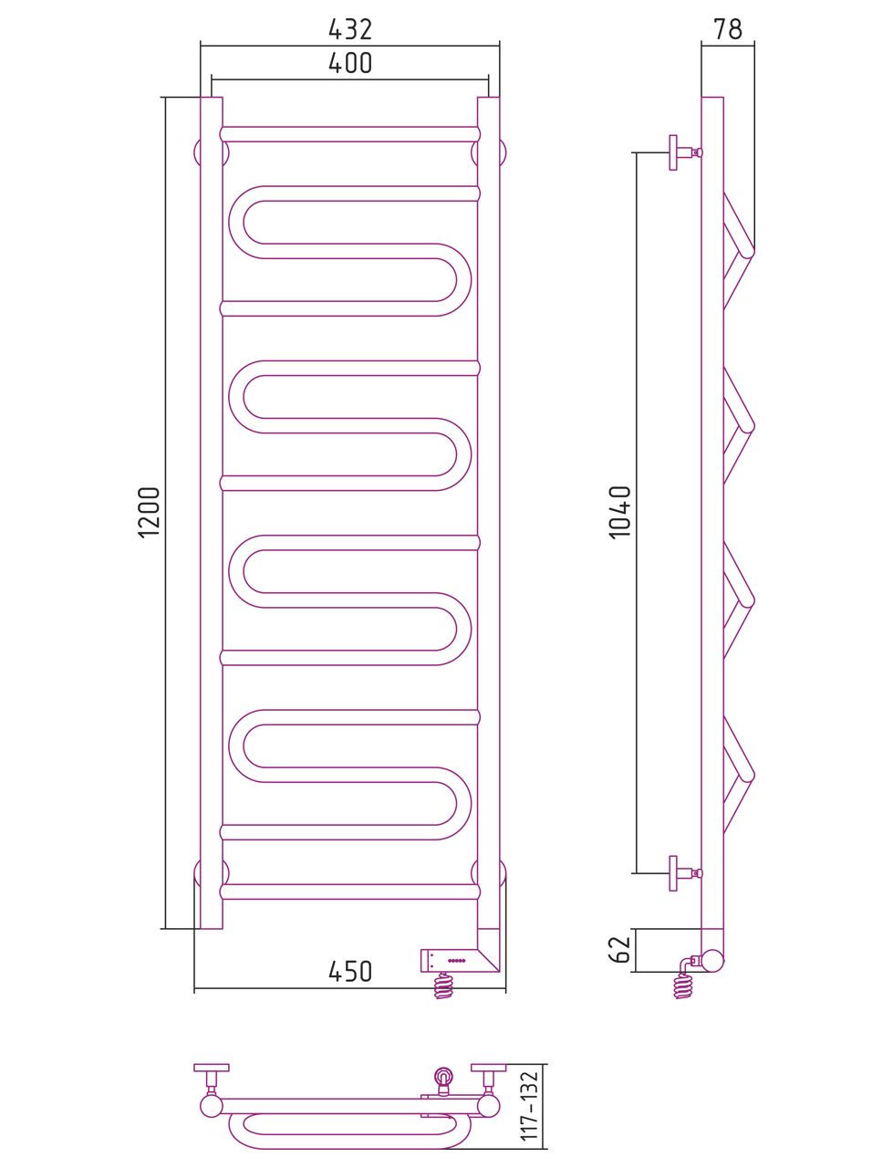 Полотенцесушитель электрический Сунержа Элегия 2.0 1200х400 МЭМ правый