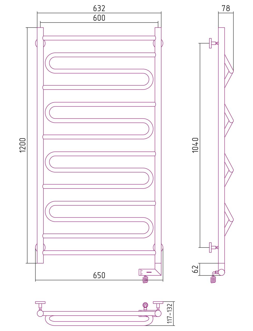 Полотенцесушитель электрический Сунержа Элегия 2.0 1200х600 МЭМ правый