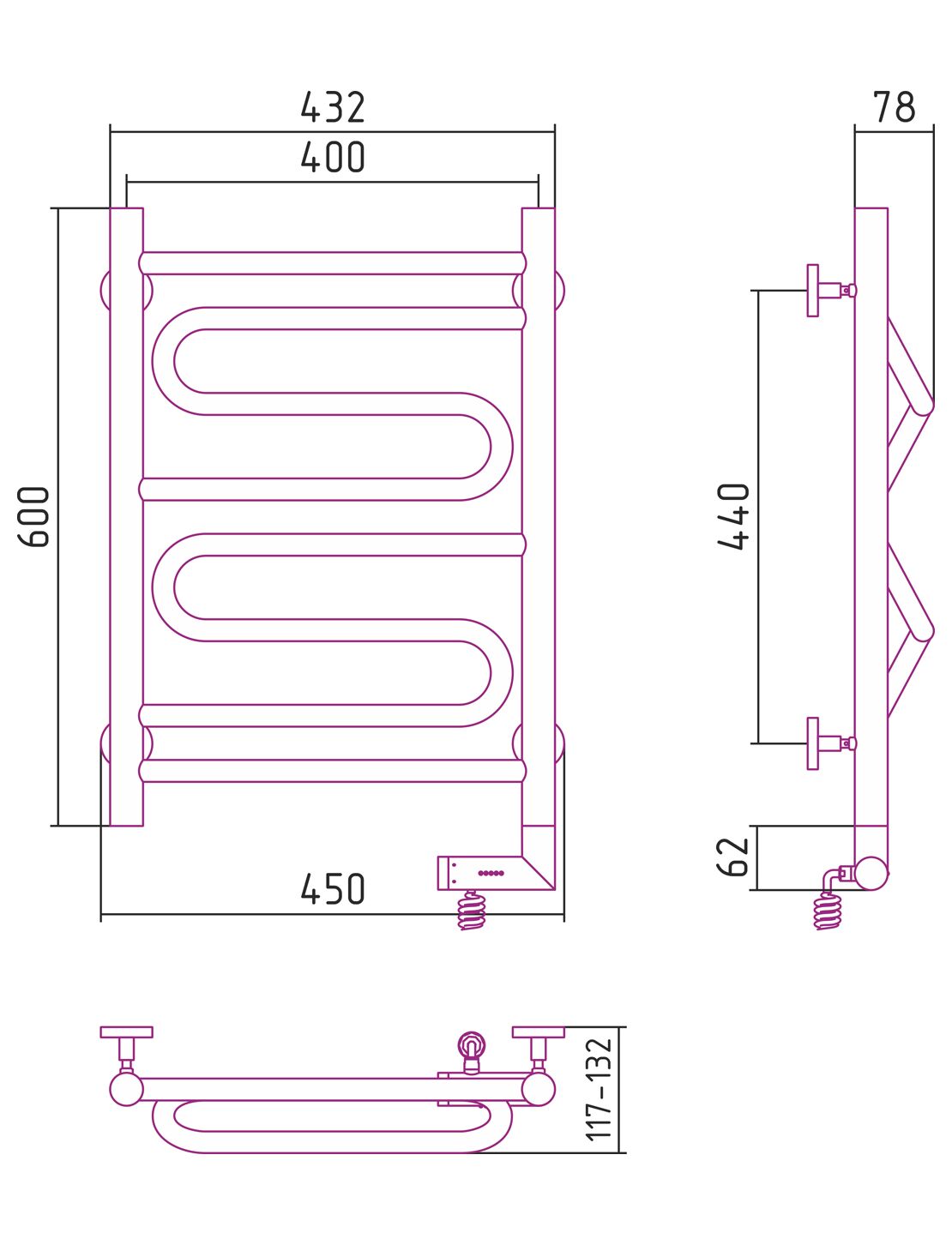 Полотенцесушитель электрический Сунержа Элегия 2.0 600х400 МЭМ правый