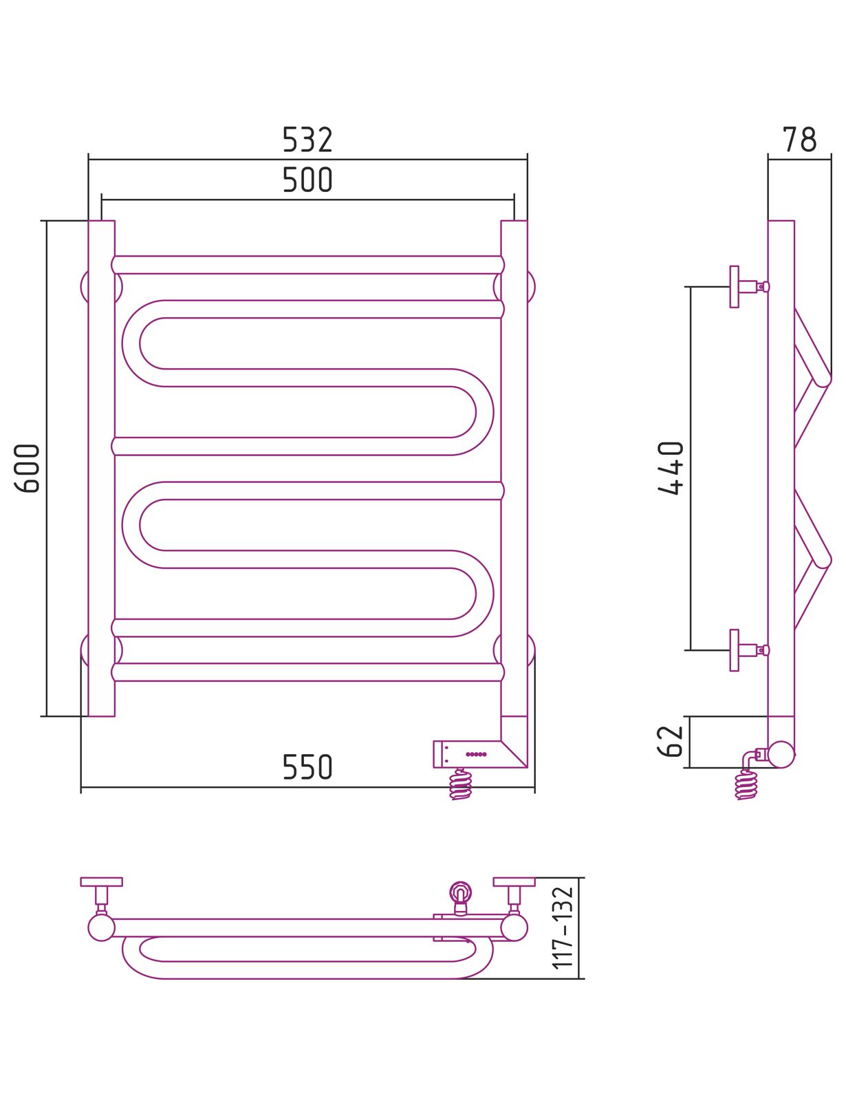 Полотенцесушитель электрический Сунержа Элегия 2.0 600х500 МЭМ правый