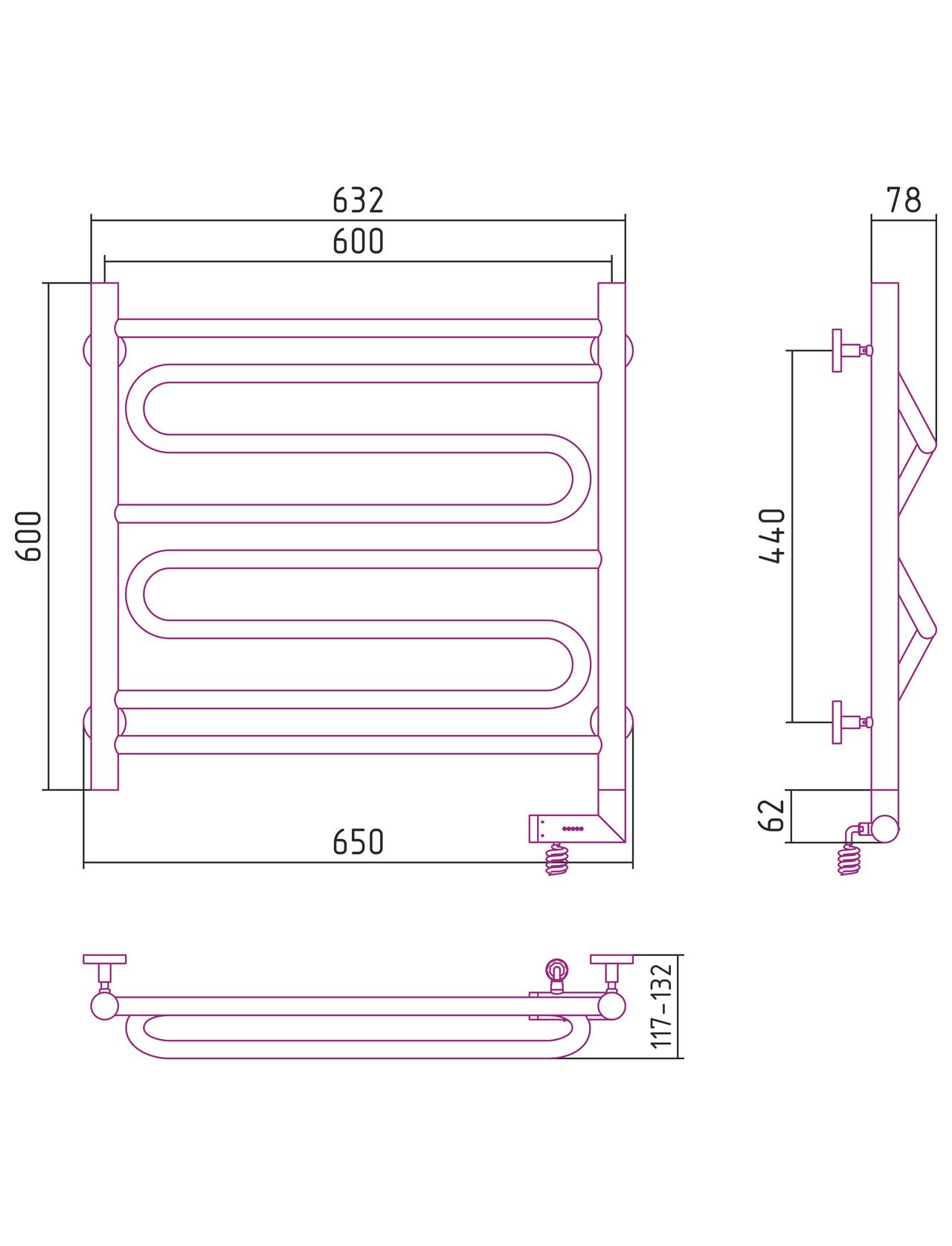 Полотенцесушитель электрический Сунержа Элегия 2.0 600х600 МЭМ правый