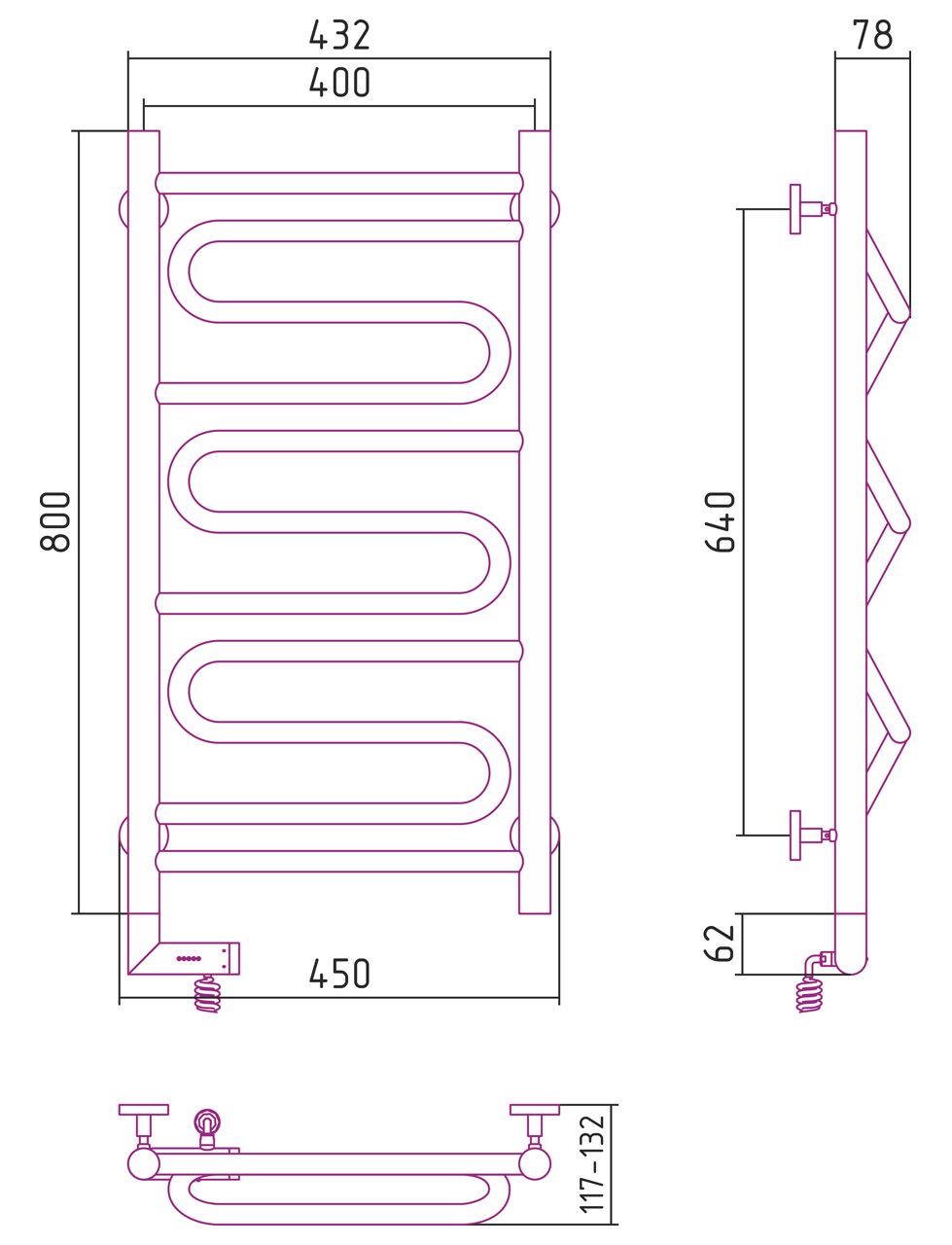 Полотенцесушитель электрический Сунержа Элегия 2.0 800х400 МЭМ левый