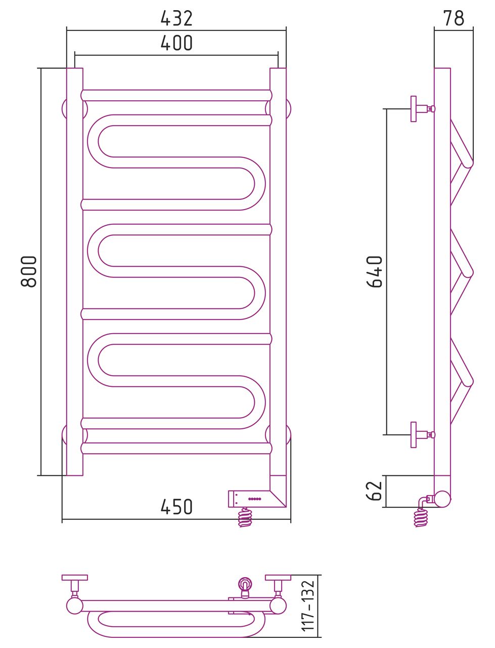 Полотенцесушитель электрический Сунержа Элегия 2.0 800х400 МЭМ правый