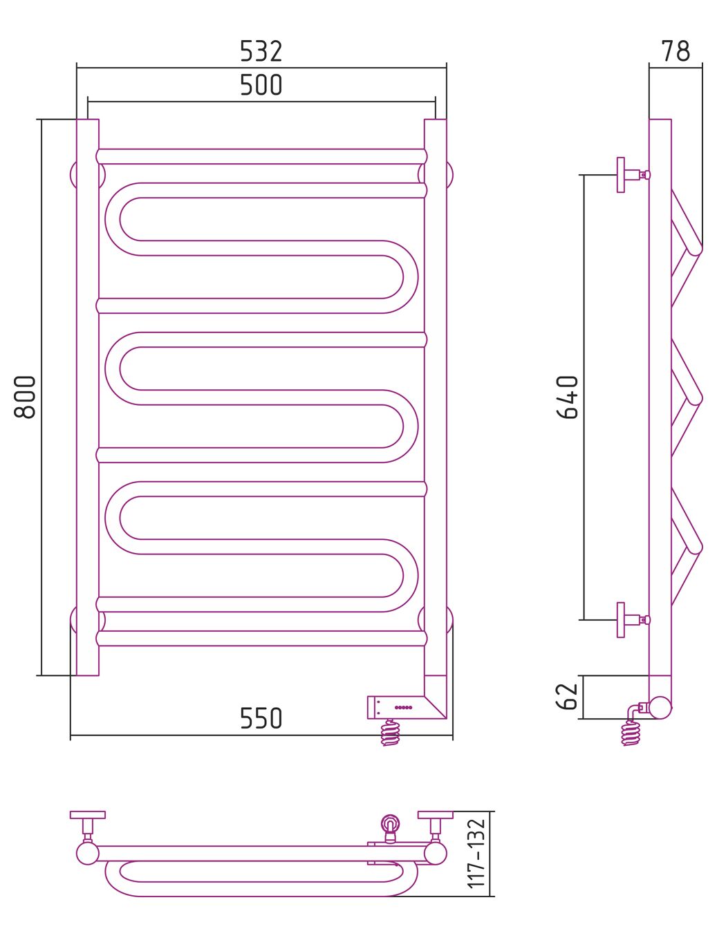 Полотенцесушитель электрический Сунержа Элегия 2.0 800х500 МЭМ правый