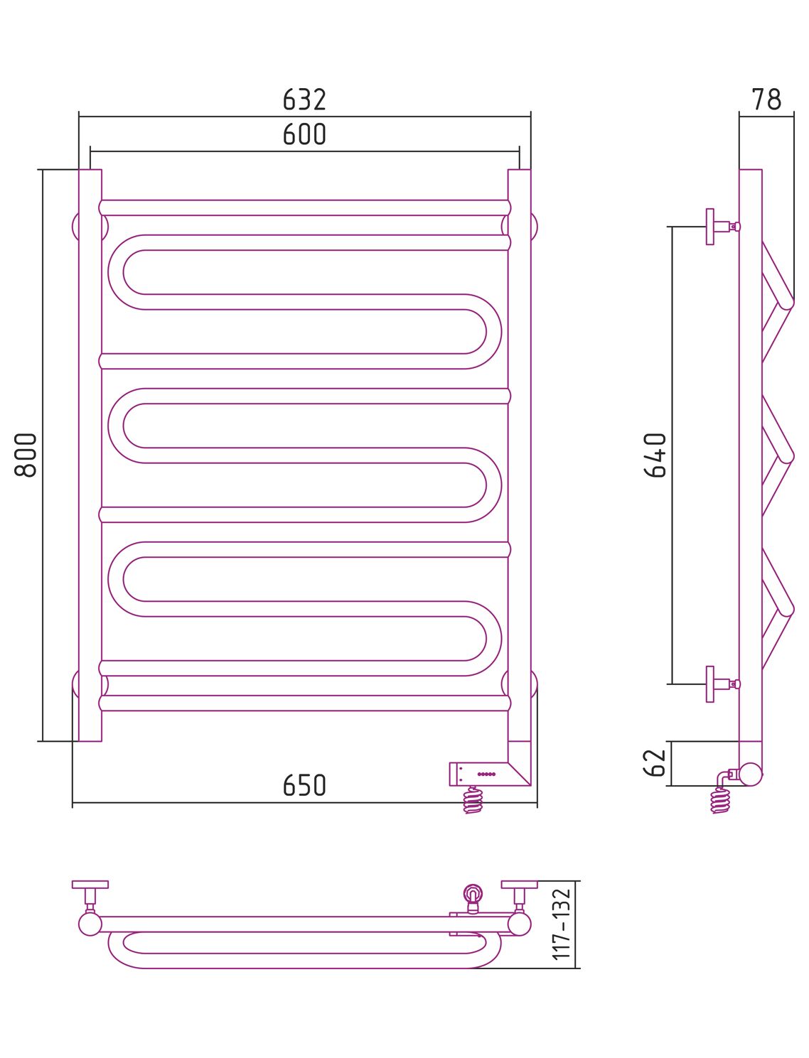Полотенцесушитель электрический Сунержа Элегия 2.0 800х600 МЭМ правый