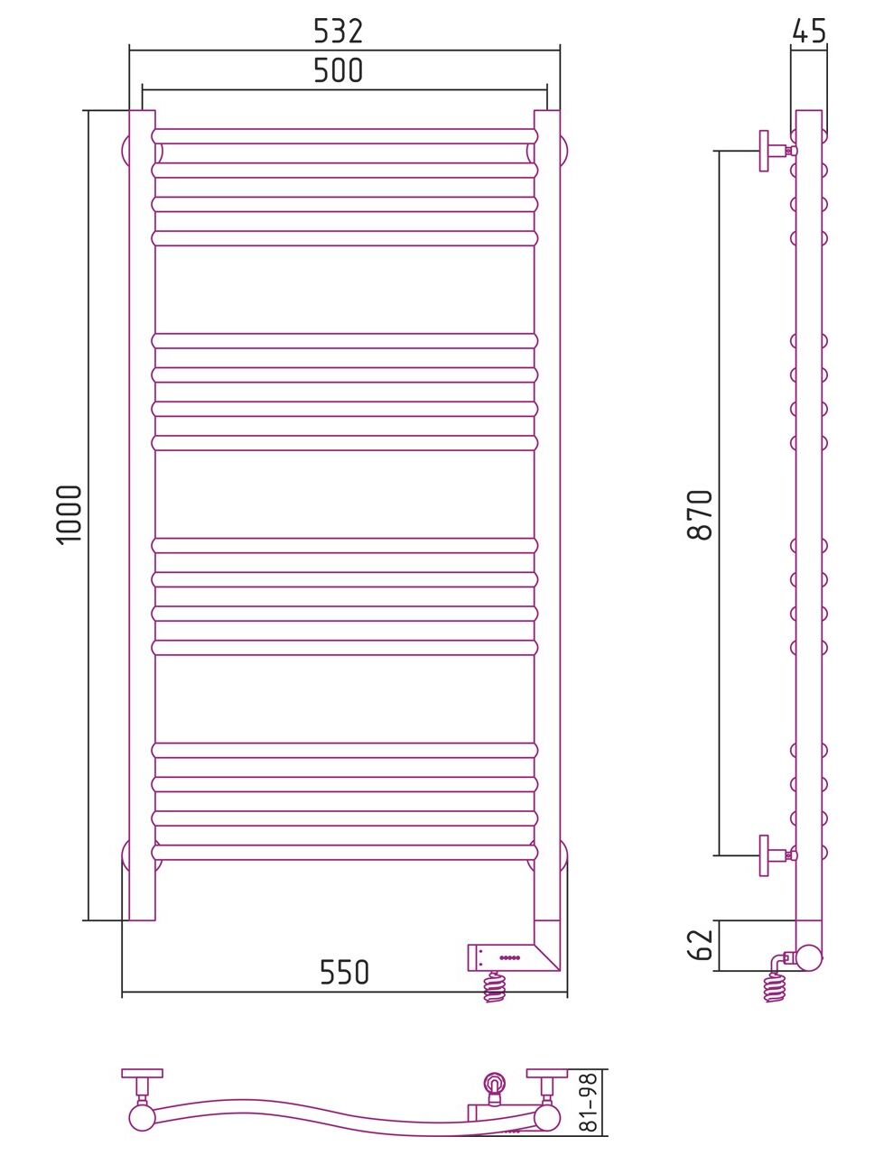 Полотенцесушитель электрический Сунержа Флюид 2.0 1000х500 МЭМ правый