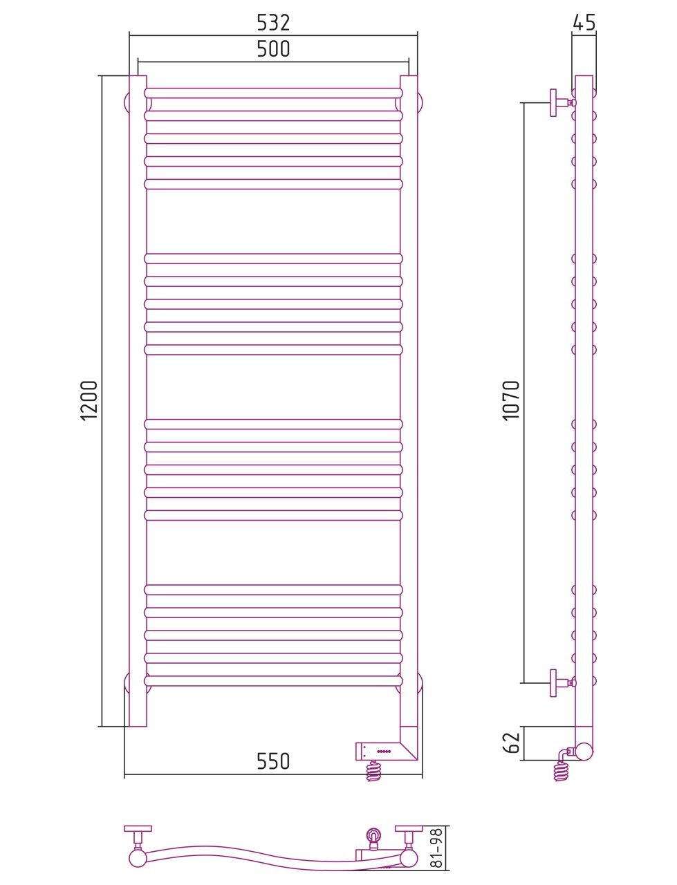 Полотенцесушитель электрический Сунержа Флюид 2.0 1200х500 МЭМ правый