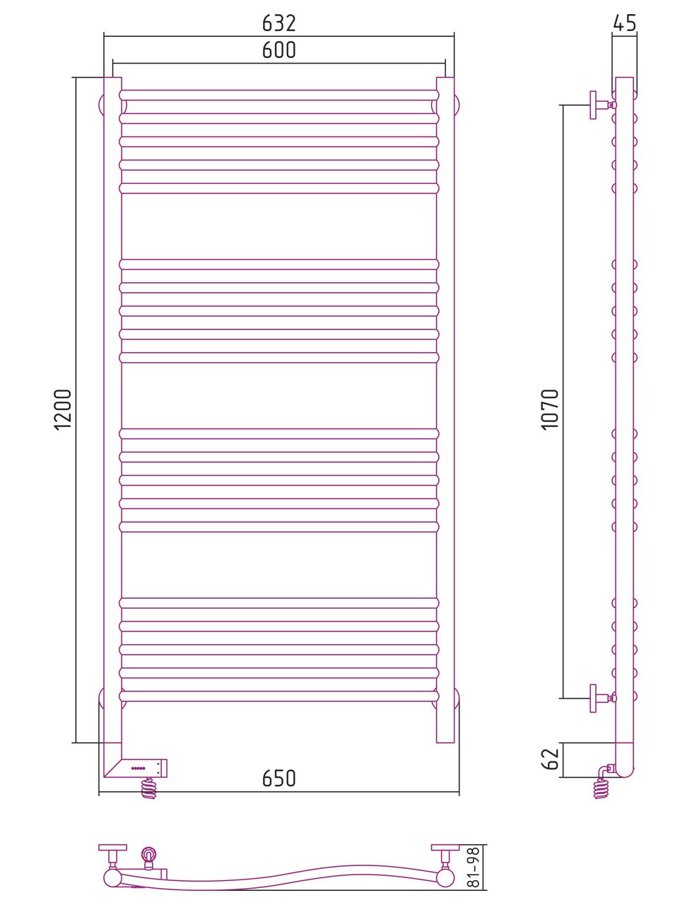 Полотенцесушитель электрический Сунержа Флюид 2.0 1200х600 МЭМ левый