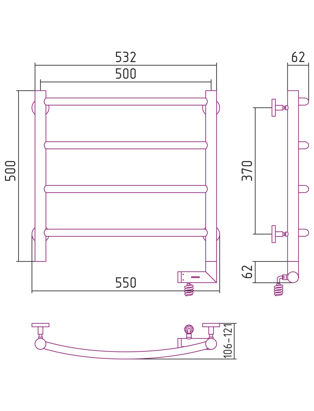 Полотенцесушитель электрический Сунержа Галант 2.0 500х500 МЭМ правый