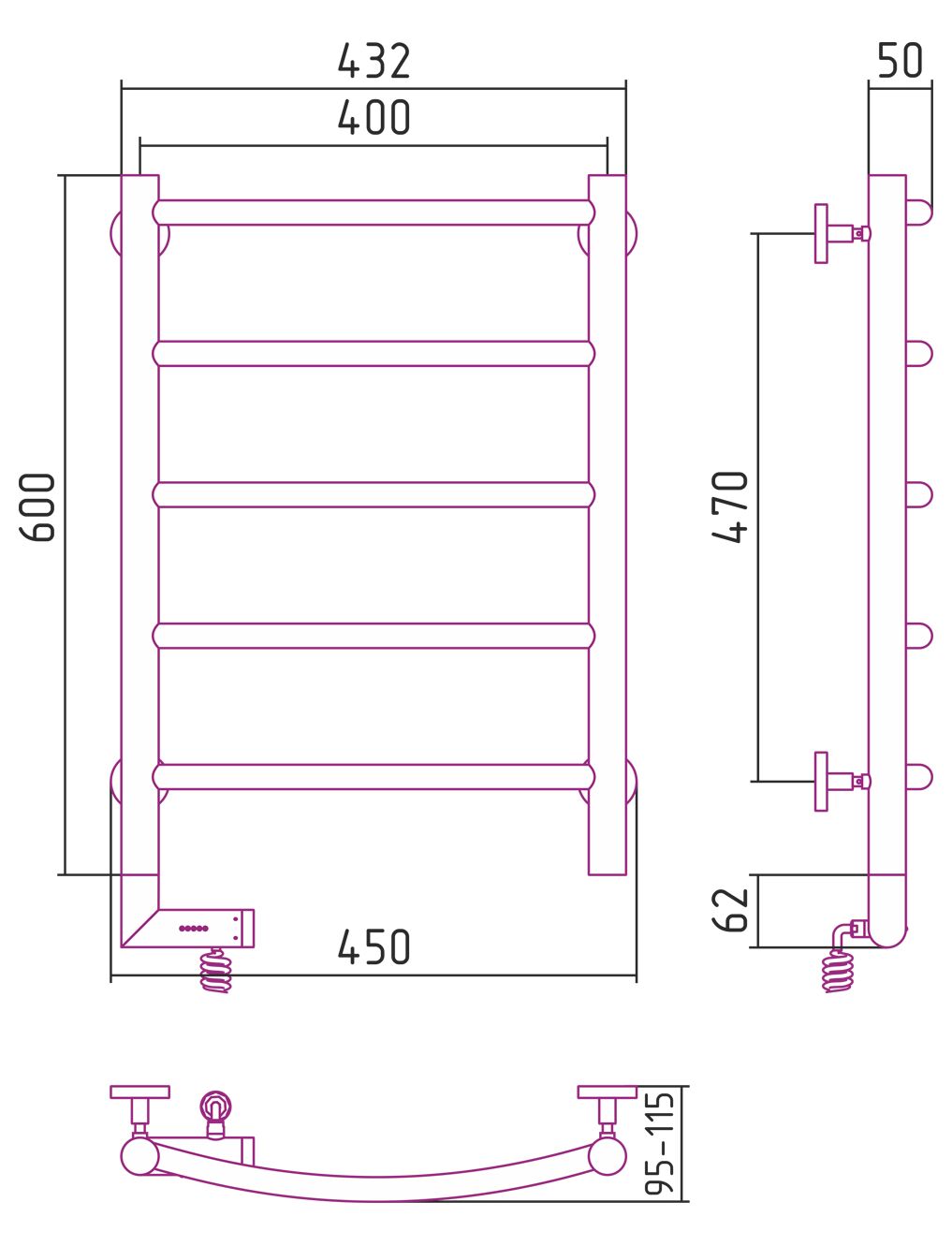 Полотенцесушитель электрический Сунержа Галант 2.0 600х400 МЭМ левый