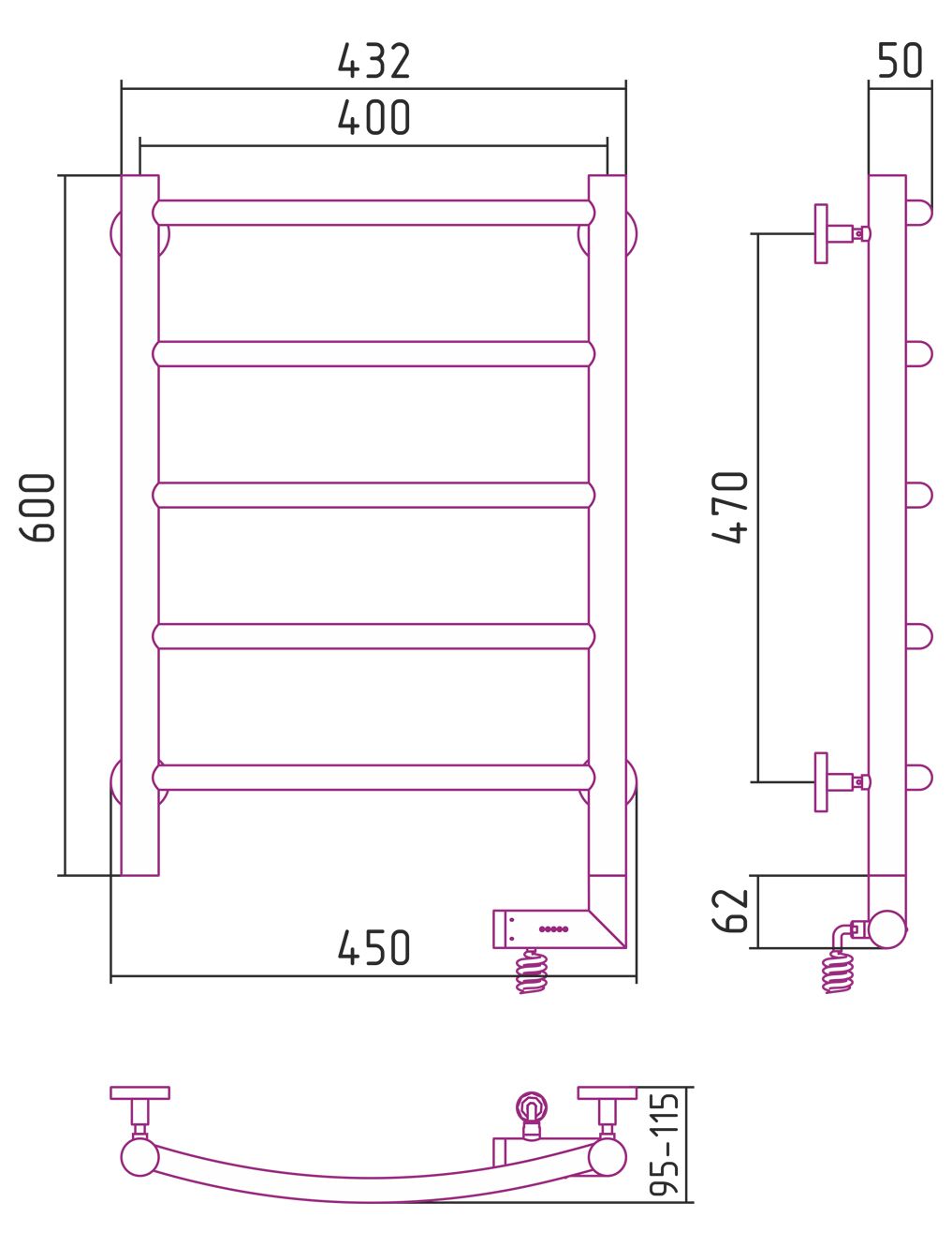 Полотенцесушитель электрический Сунержа Галант 2.0 600х400 МЭМ правый