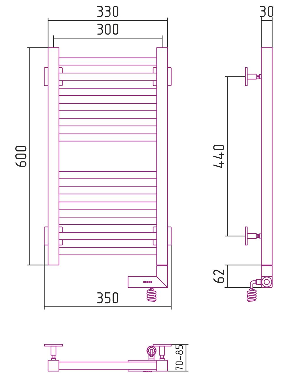 Полотенцесушитель электрический Сунержа Модус 2.0 600х300 МЭМ правый