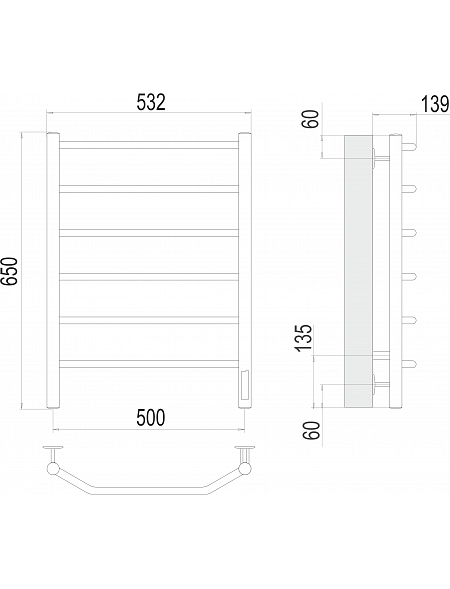 Полотенцесушитель электрический Виктория П6 500х650 электро