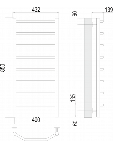 Полотенцесушитель электрический Виктория П8 400х850 электро